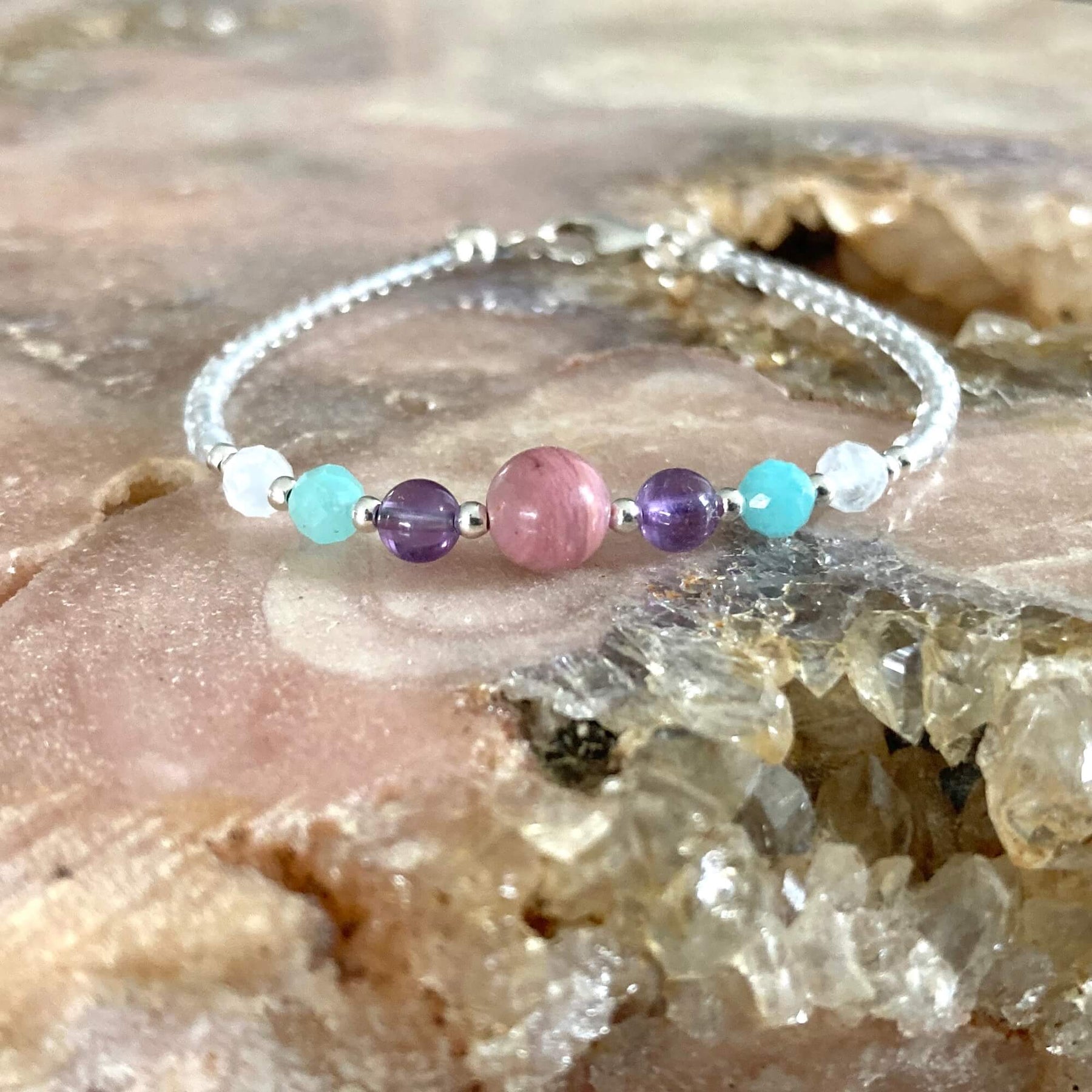Generations Of Women Bracelet Set created using Amethyst, Amazonite, Moonstone & Rhodonite Designed to strengthen and harmonise the bond between the Generations Of Women in your family.