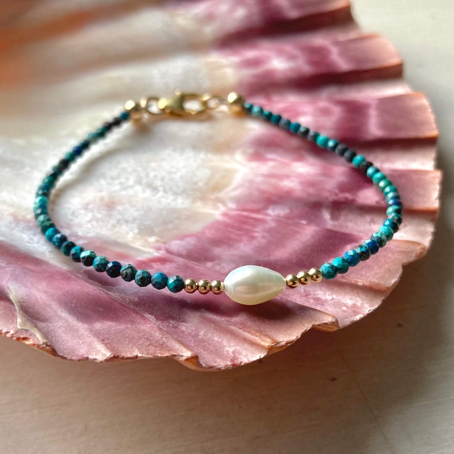 Golden Azurite & Pearl Bracelet