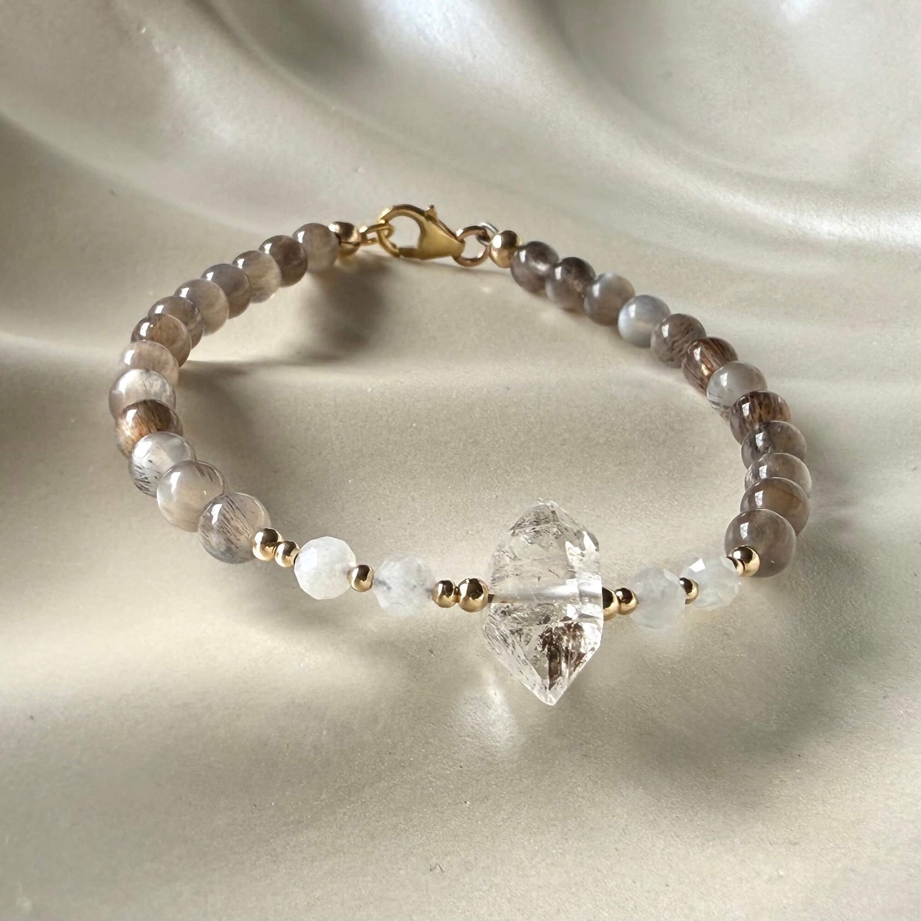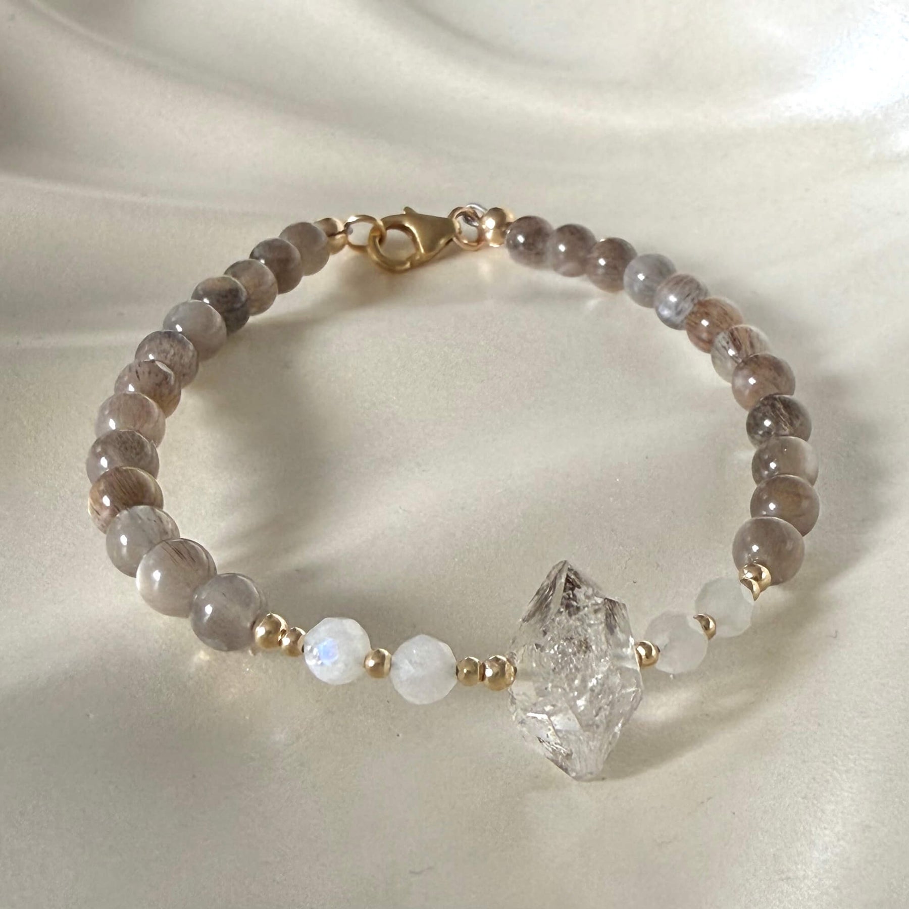A stone of newness and femininity Black Moonstone delivers focus and flow into new beginnings and new endeavours, allowing you to trust the processes and move forward with confidence. Black Moonstone heightens intuition, allowing you to receive guidance from higher powers.
