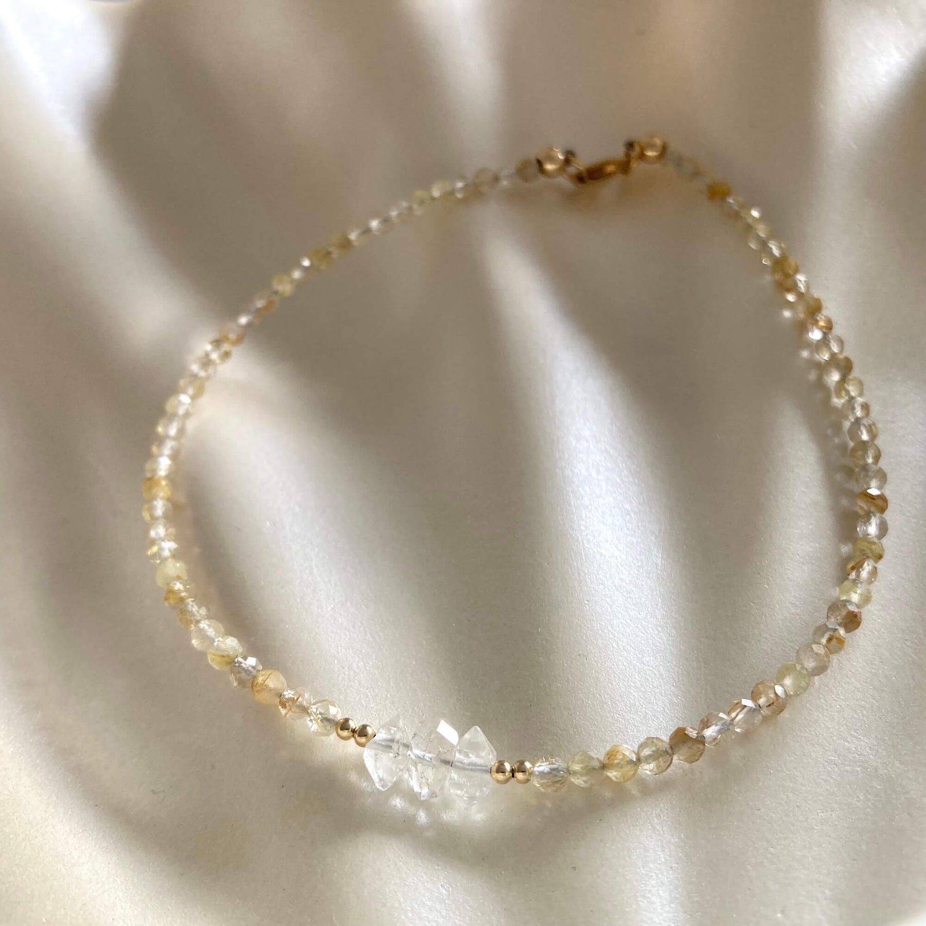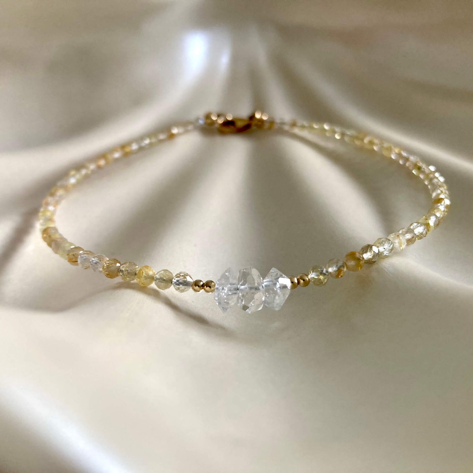 Golden Seeker Of Light Herkimer Diamond & Rutilated Quartz Anklet