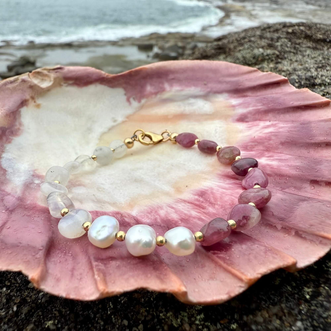 One Of A Kind Moonstone, Pearl & Pink Tourmaline Gold Bracelet