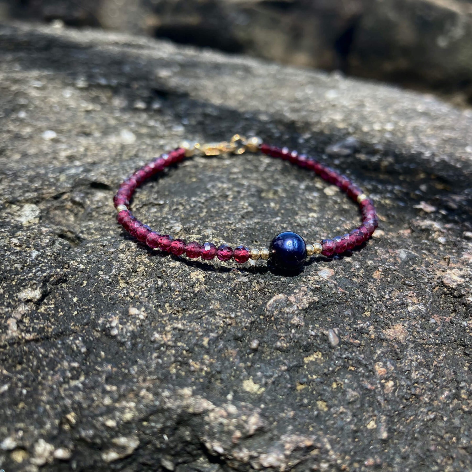 Garnet, Black Pearl & Gold Bracelet
