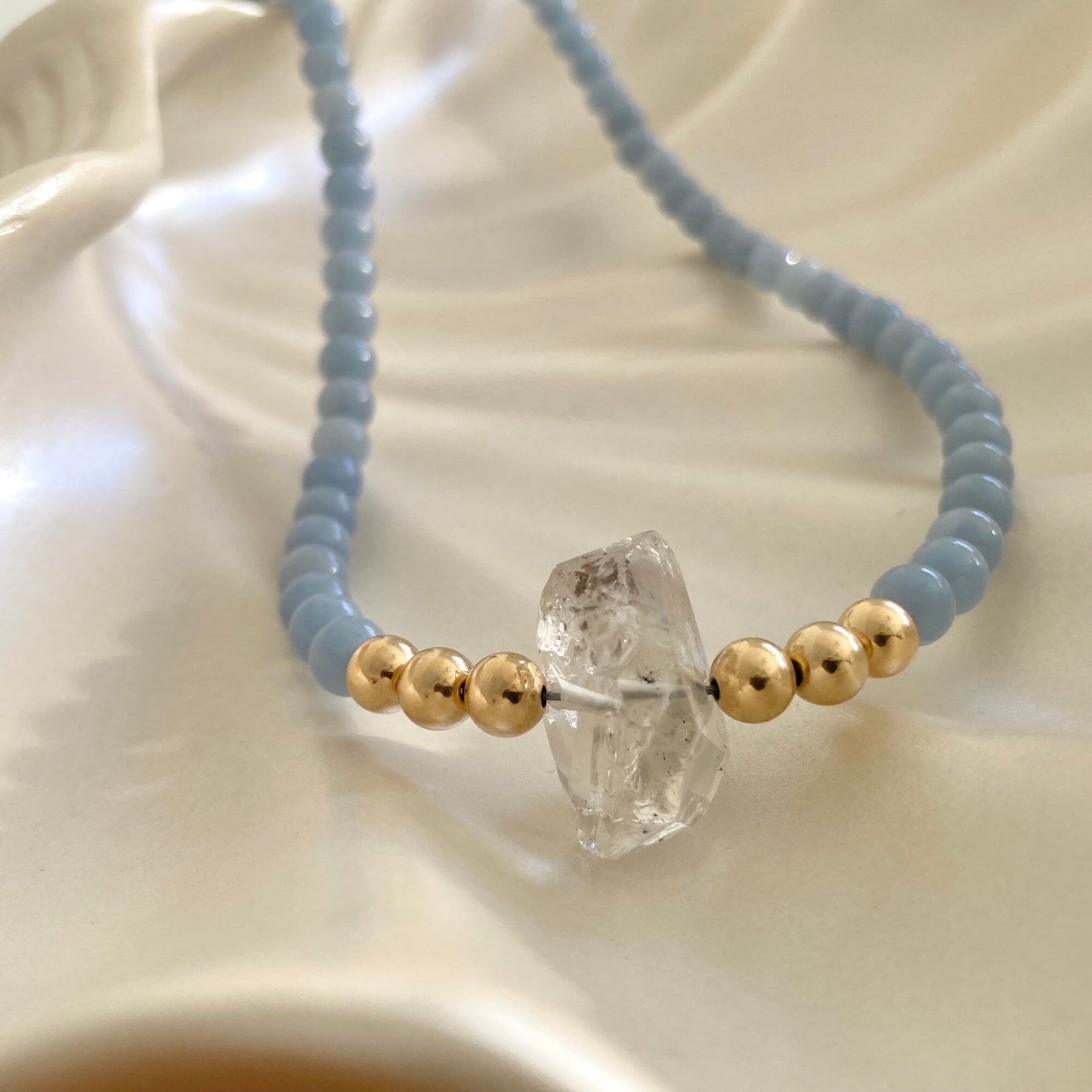 Connected to the throat chakra, Angelite delivers balance to that area for truthful expression and communication encouraging you to speak with clarity and conviction helping you to express your inner truths, making it the perfect companion for those who find it difficult to voice their own needs.