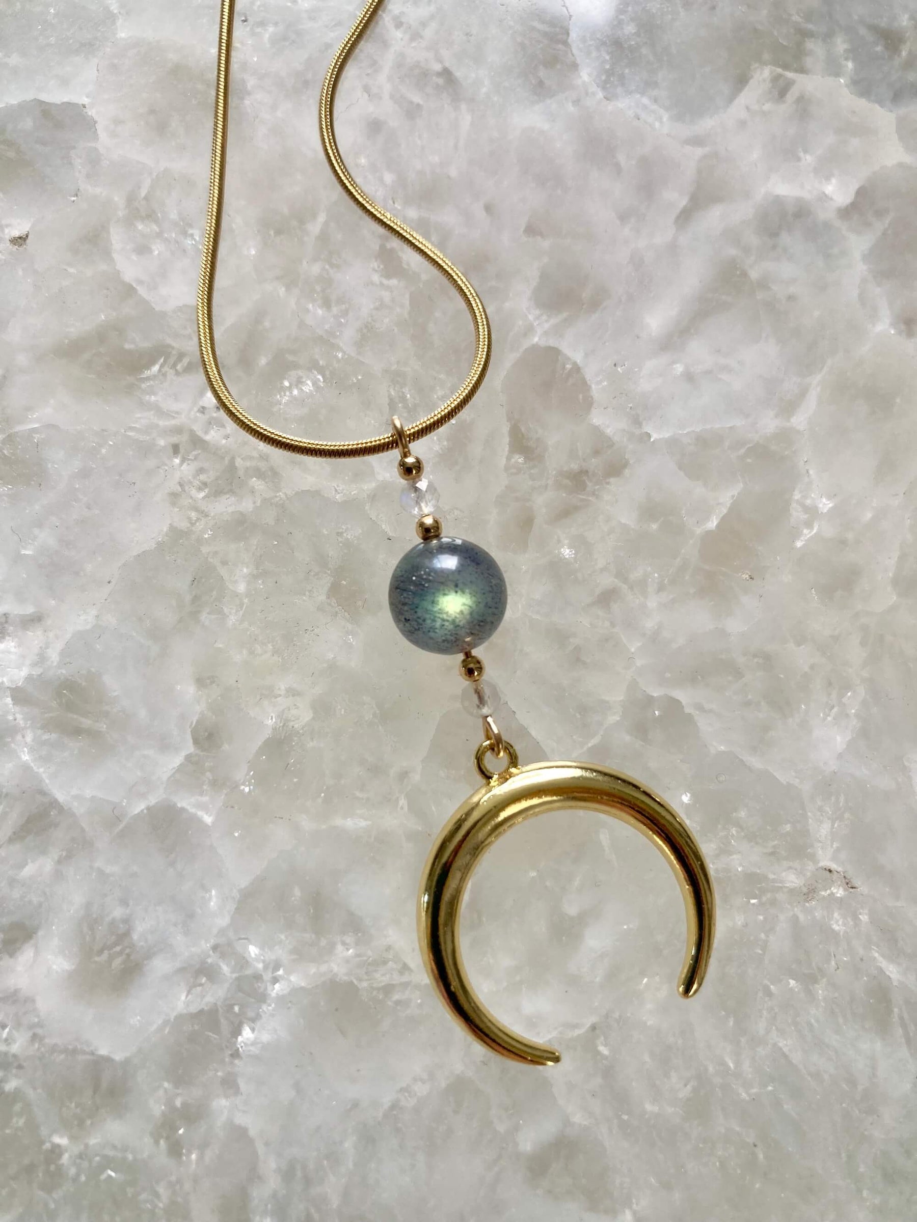 The Crescent Horn Moon Phase is the astrological symbol of the moon and alchemical symbol for silver, it protects and guides the beholder, evoking luck to birth new ideas, personal strength and fertility for all that you desire to bring to your life.