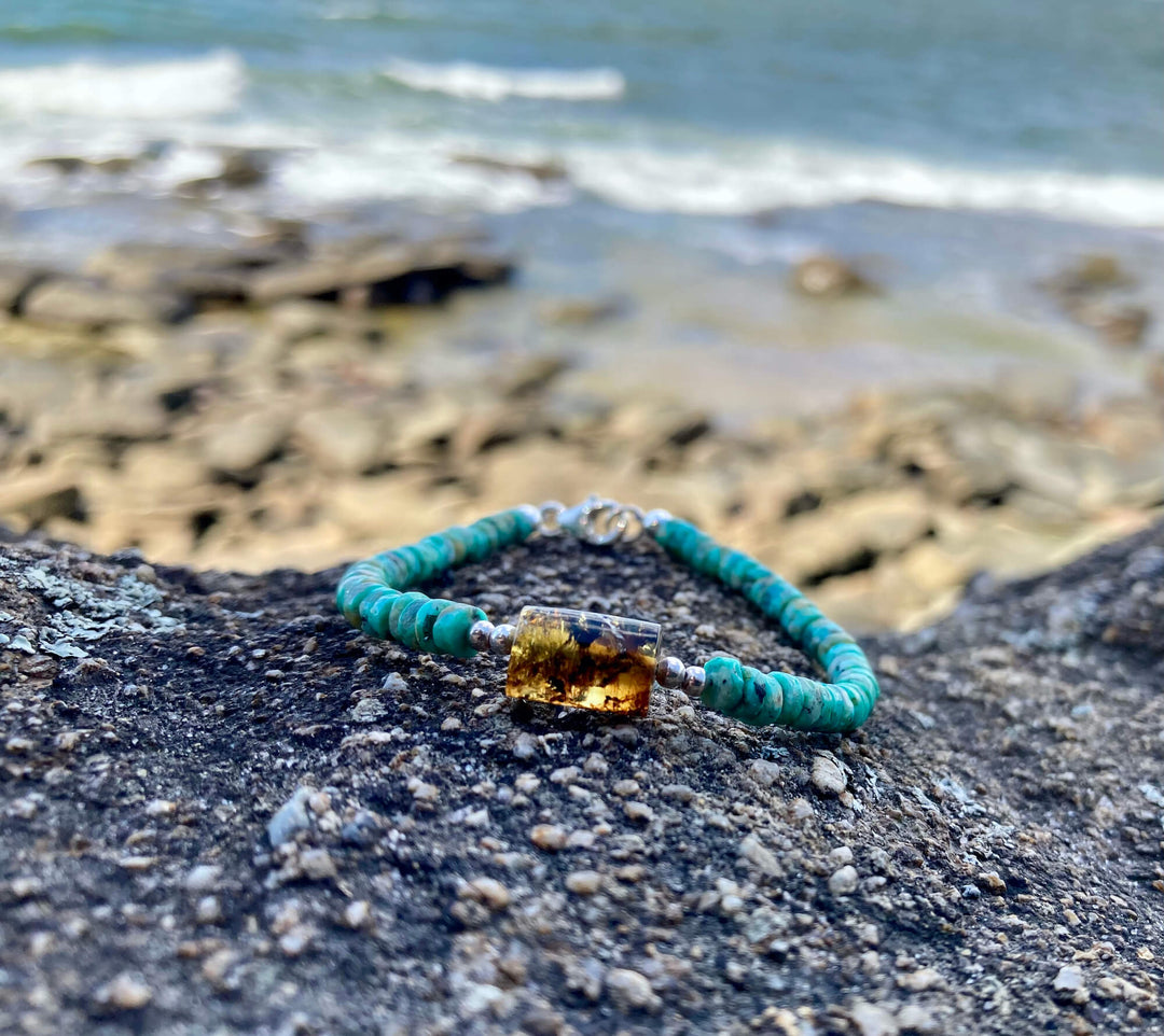 African Turquoise & Amber Bracelet