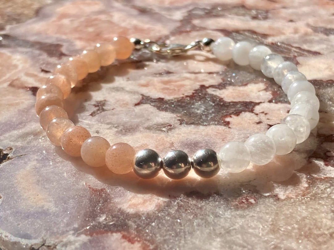 Inner Unity Moonstone and Sunstone Silver Bracelet