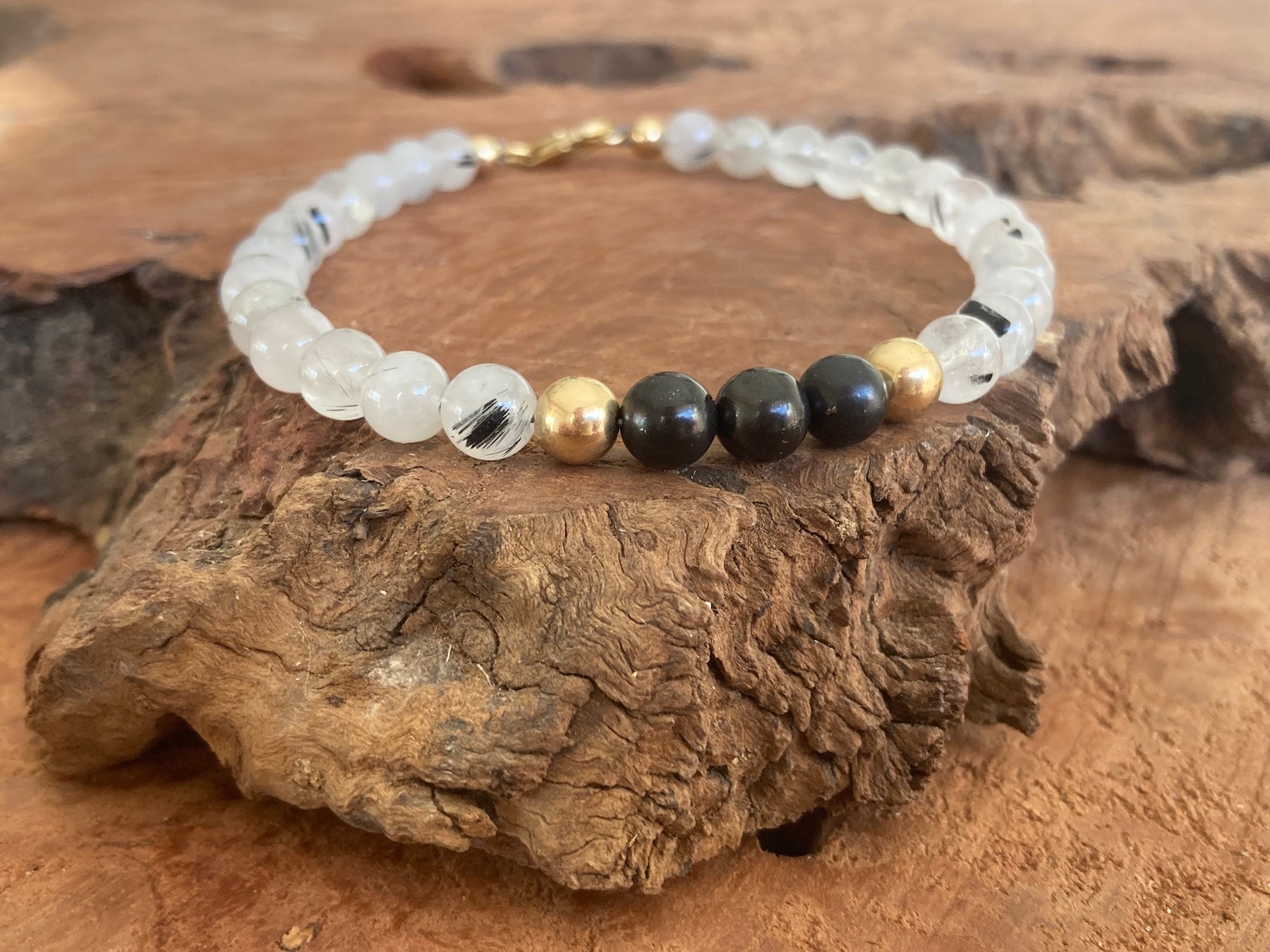 Duality - Shungite & Tourmalinated Quartz - Gold Men's Bracelet