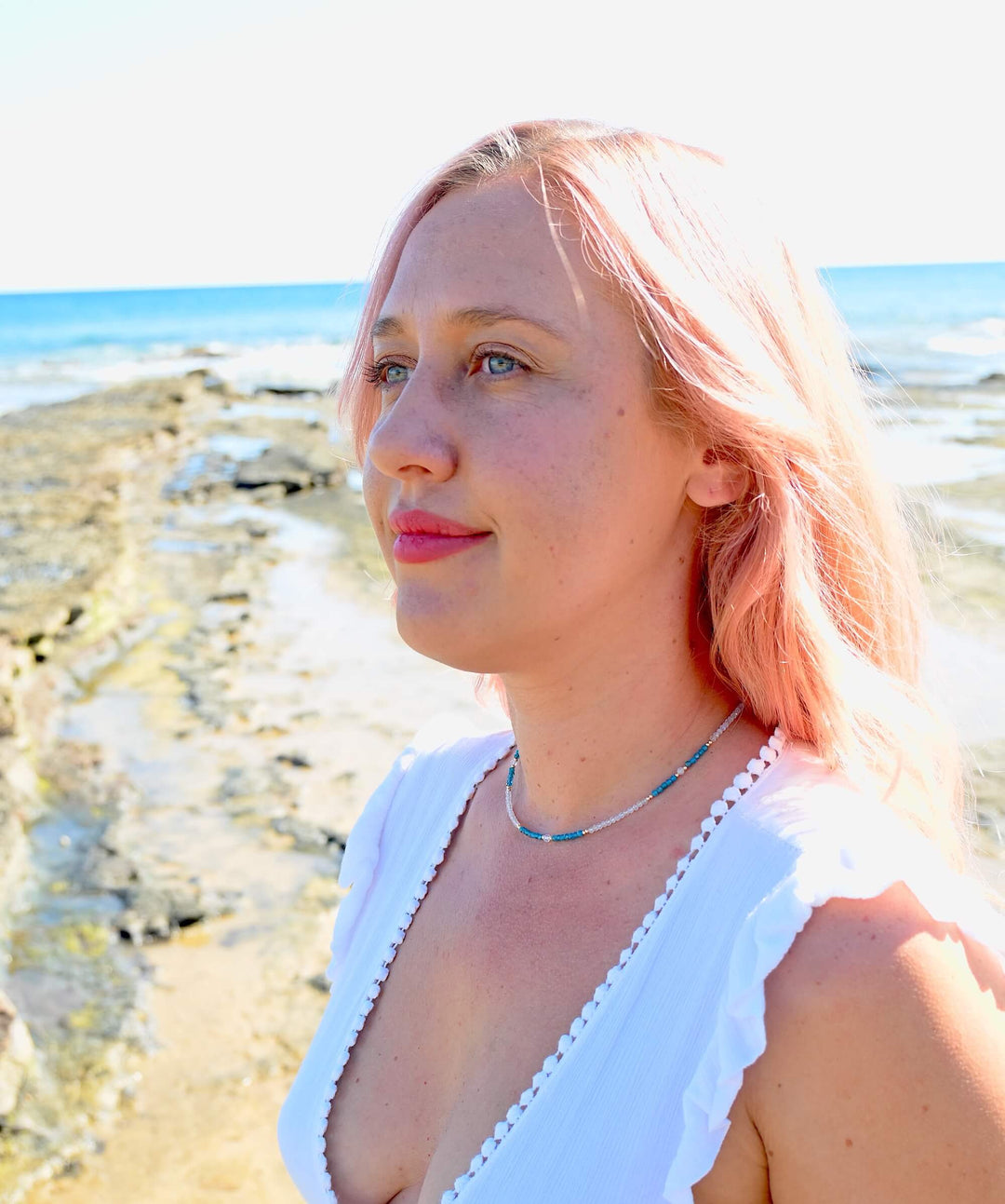 Lemurian Dreaming Amazonite, Apatite & Moonstone Gold Necklace