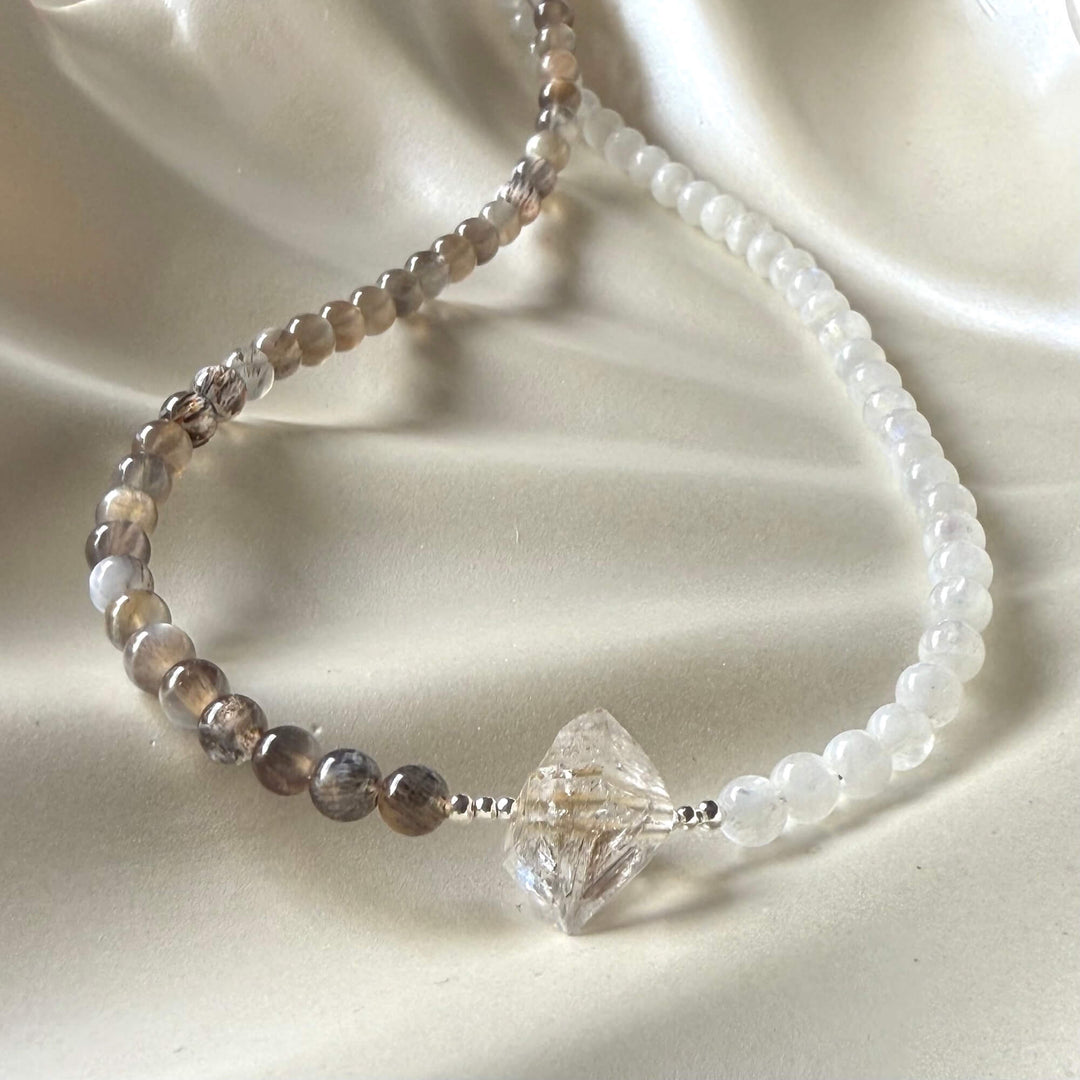 Duality Herkimer, Black Moonstone & Moonstone Necklace