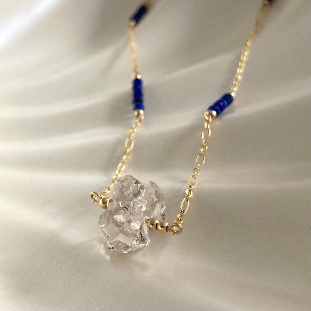 Golden Herkimer Diamond and Lapis Lazuli Chain Necklace
