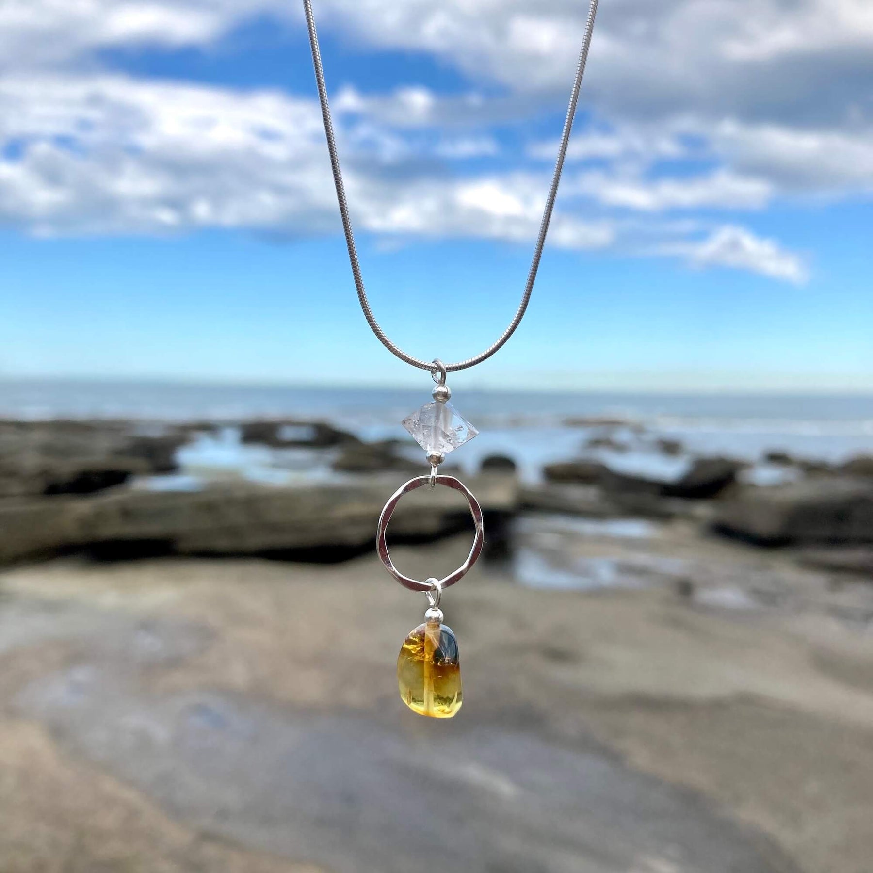 Amber & Herkimer Diamond Necklace