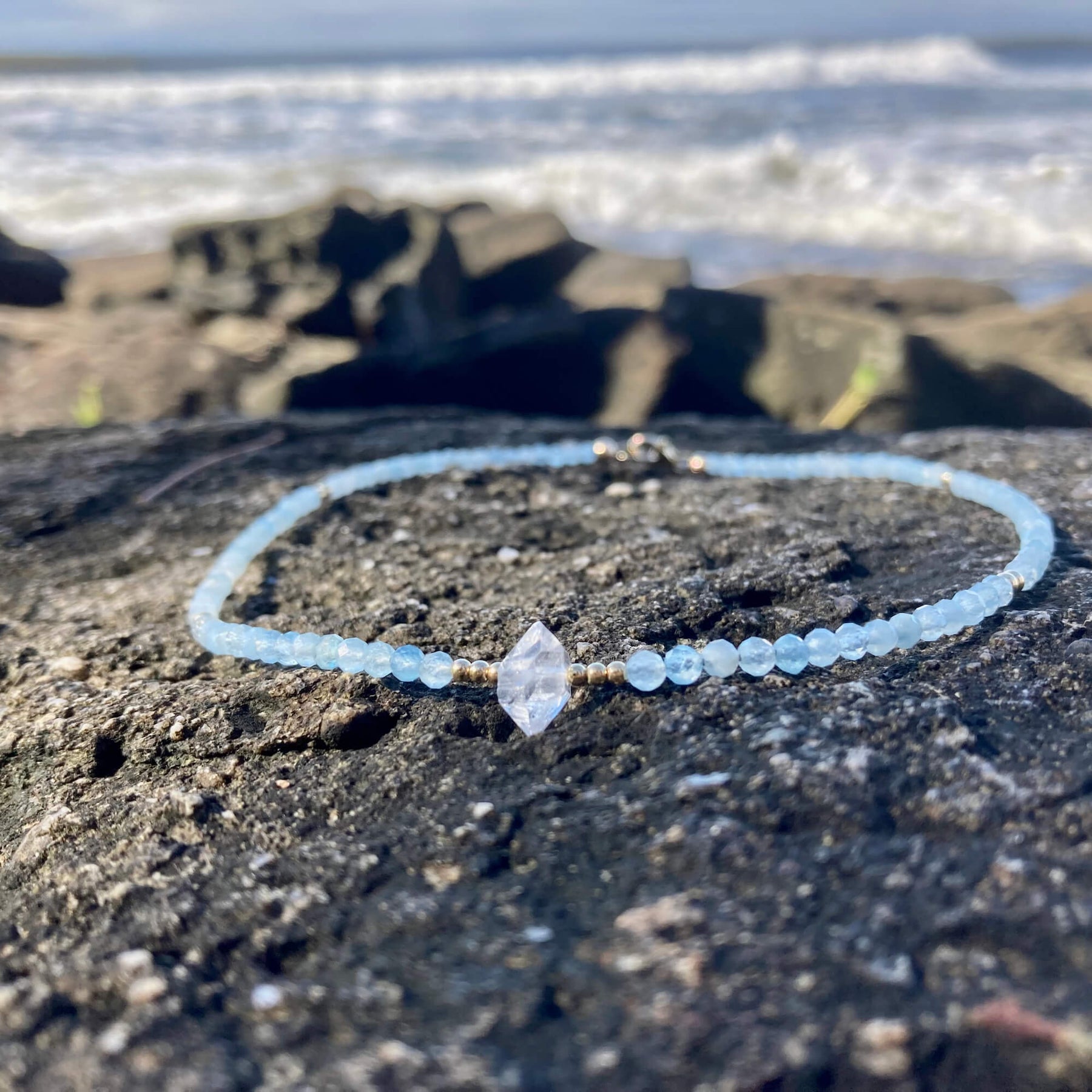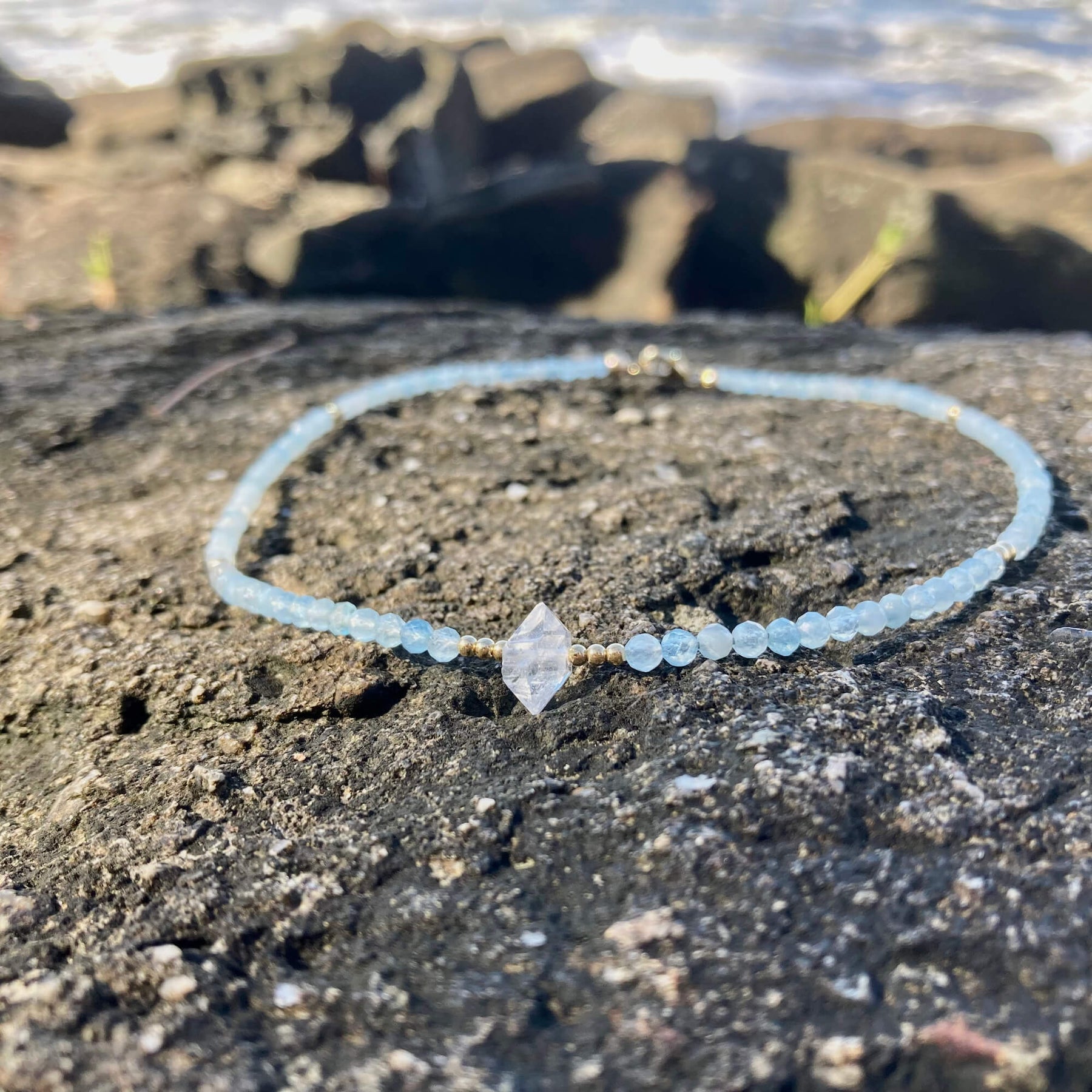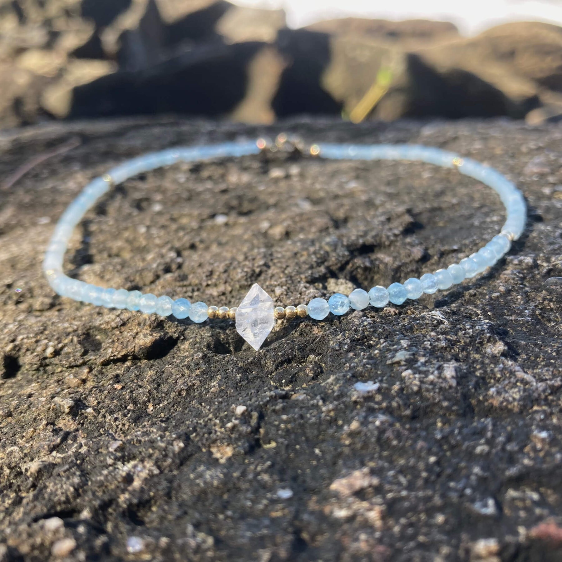 Atlantis Aquamarine & Herkimer Diamond Gold Choker