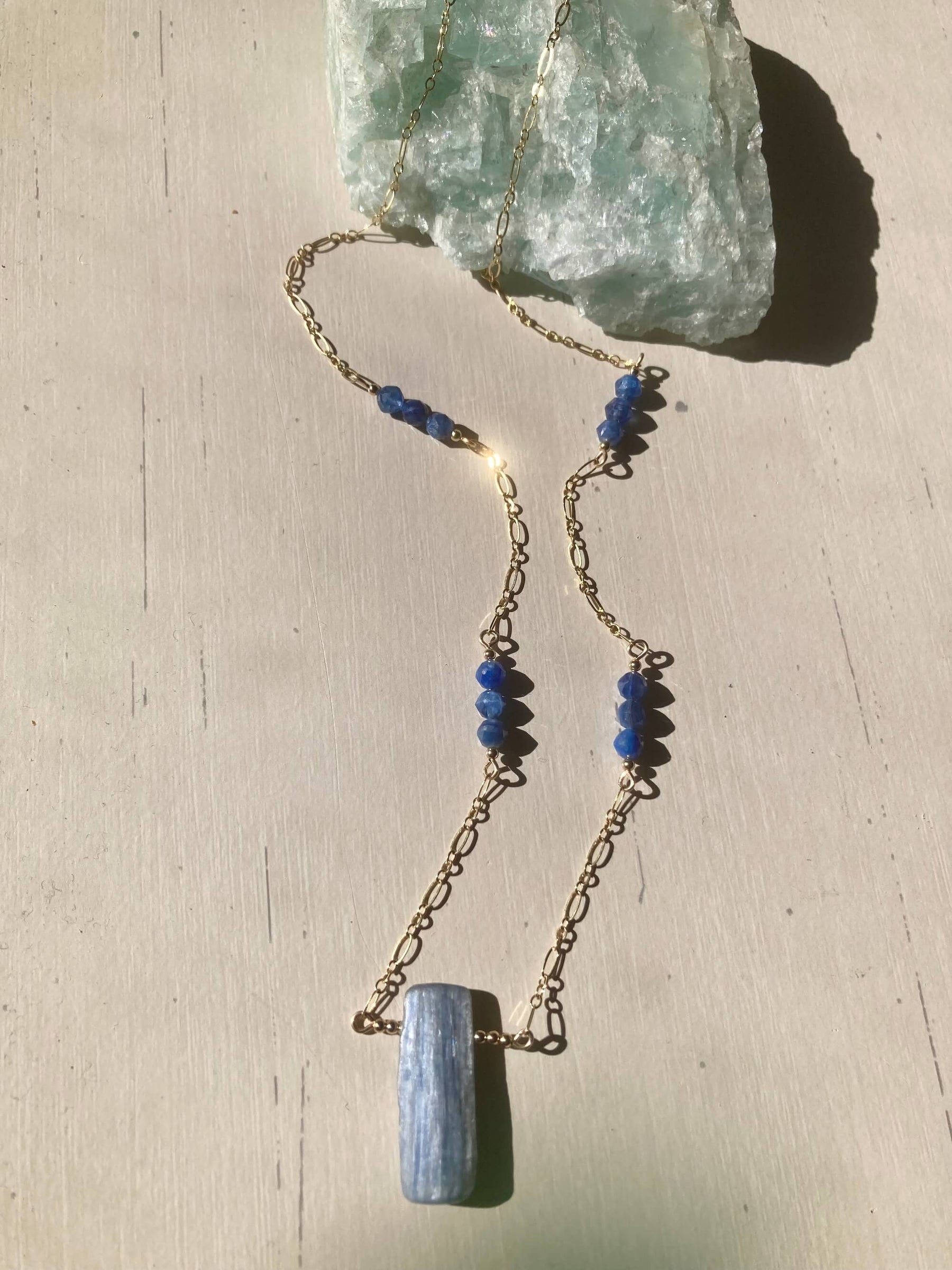Blue Kyanite stimulates and nurtures the throat chakra, known as the voice of the body, if the throat chakra is blocked or not balanced it can have a profound effect on how our entire chakra system functions, when the throat chakra comes back into alignment the flow of energy and balance is present, allowing self expression, our own beliefs, emotions and truth to be communicated authentically and honestly.