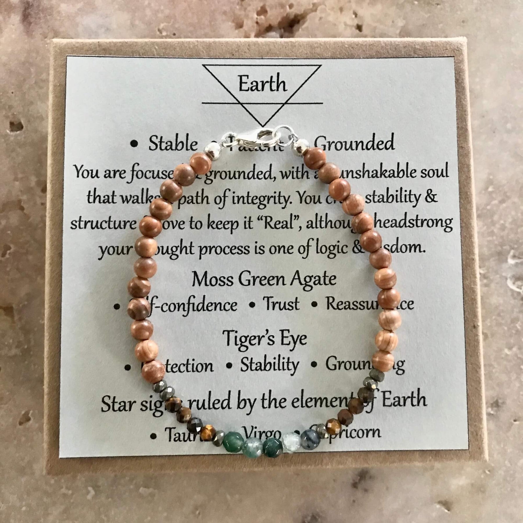 A stone of truth Moss Green Agate encourages hope and trust, it helps to release fear and deep-seated stress. It boosts self-confidence and self-esteem and helps you to communicate clearly and honestly.