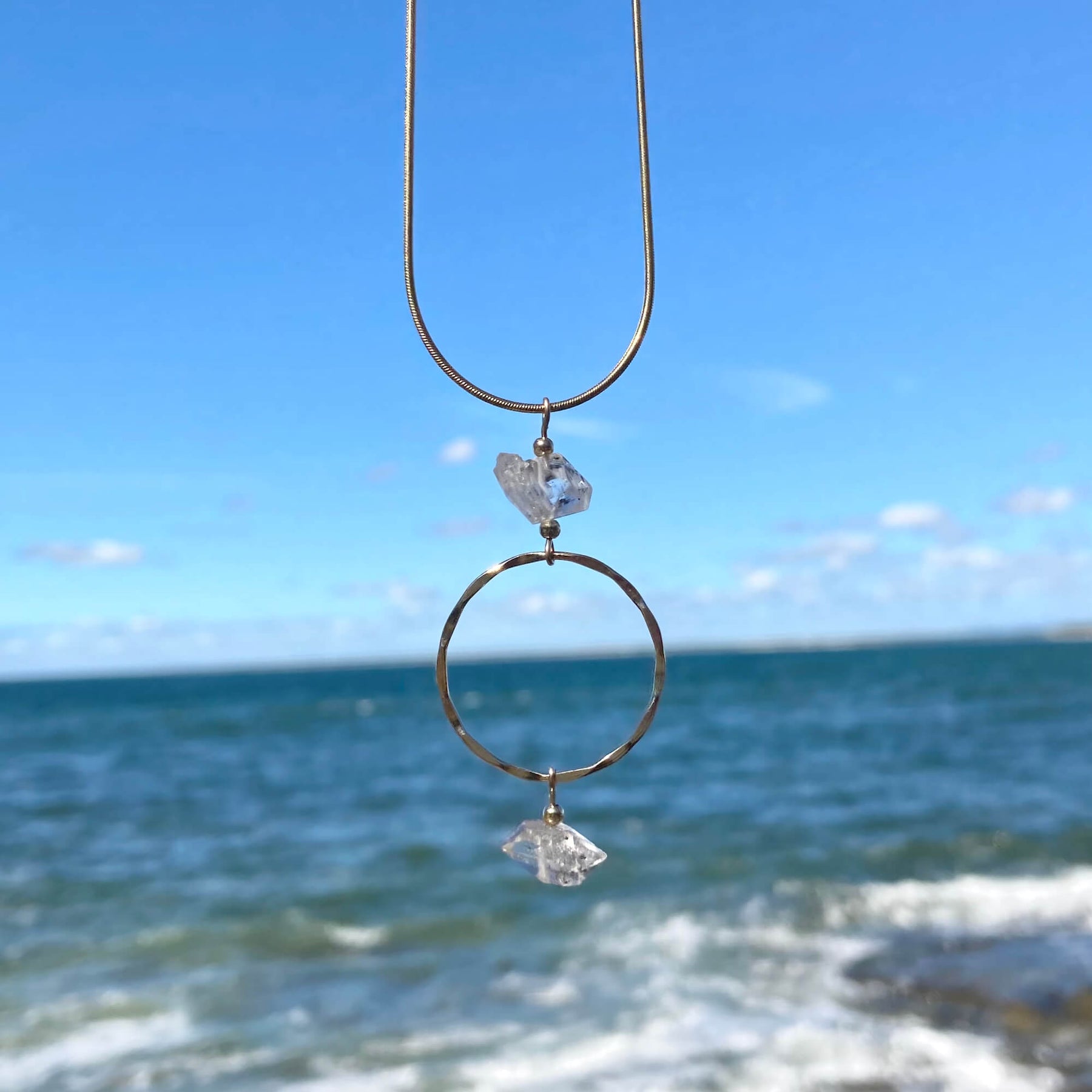 Golden Herkimer Diamond Pendant Necklace