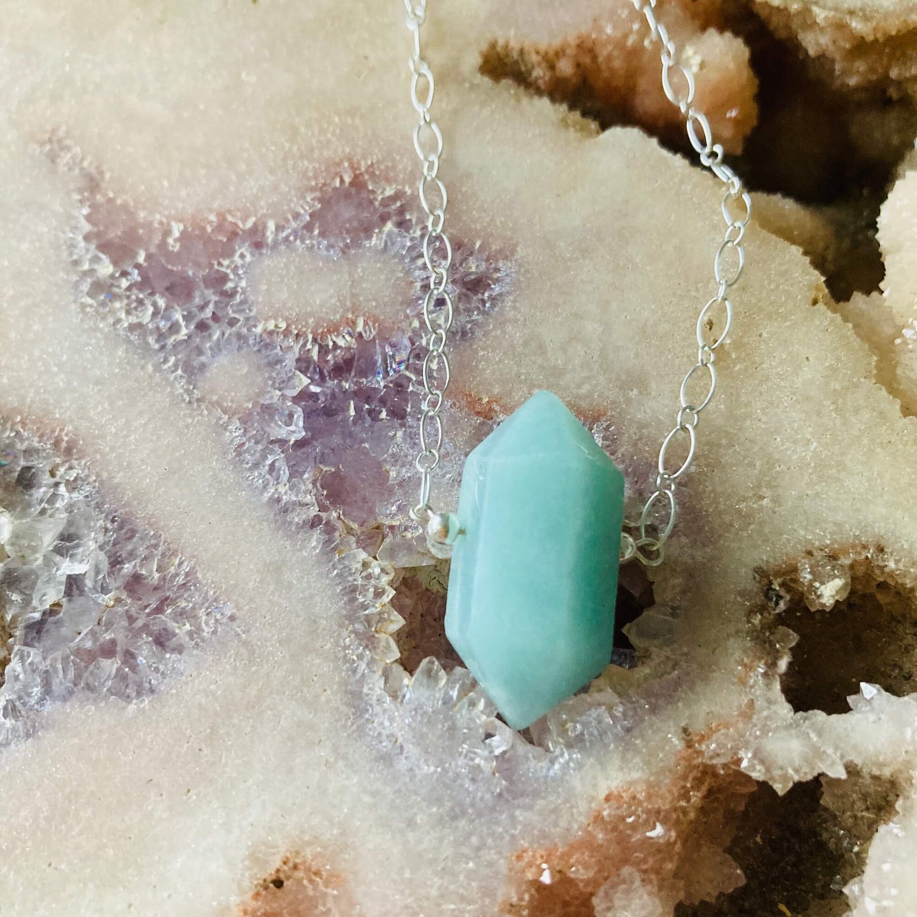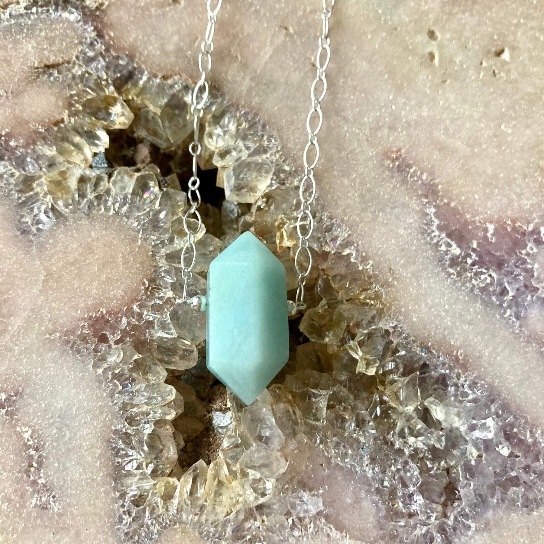 I Am Worthy, Amazonite Double Terminated Pendant Necklace