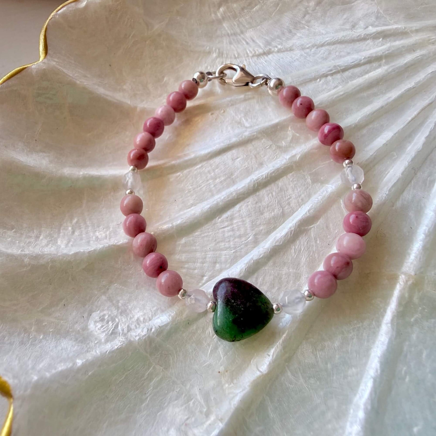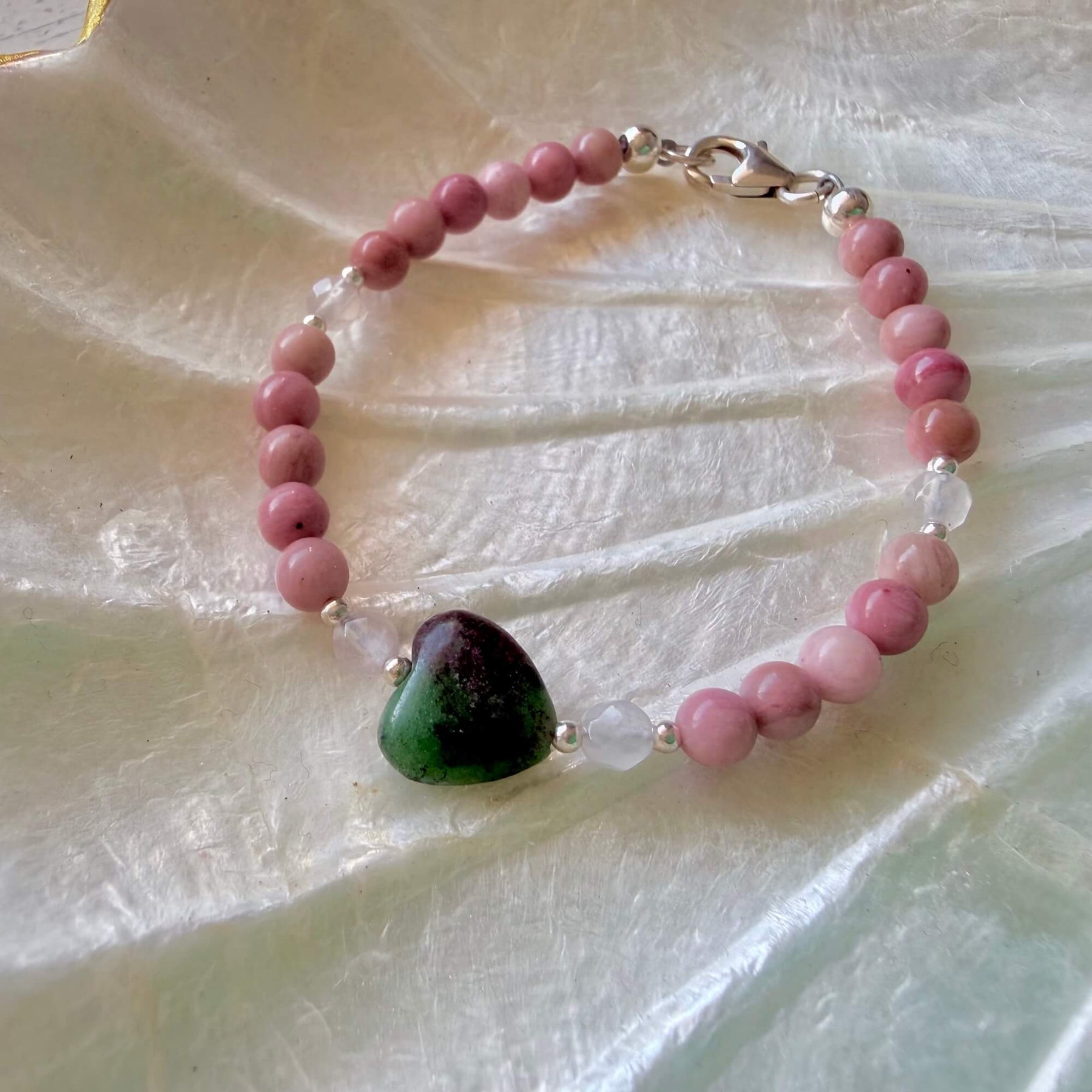 Filled with love and balance Rhodonite's beautiful heartfelt energy nurtures you to fully embrace and love all that you are. Rhodonite strengthens your heart and releases lack and self-doubt, providing you with feelings of self-love and self-worth.