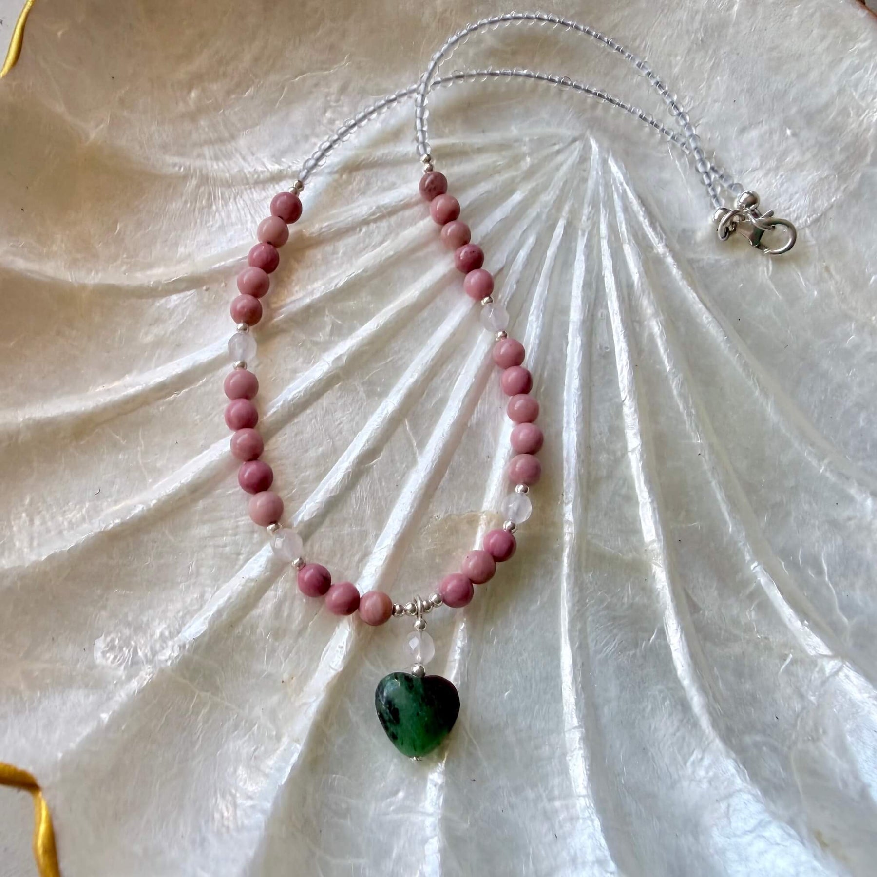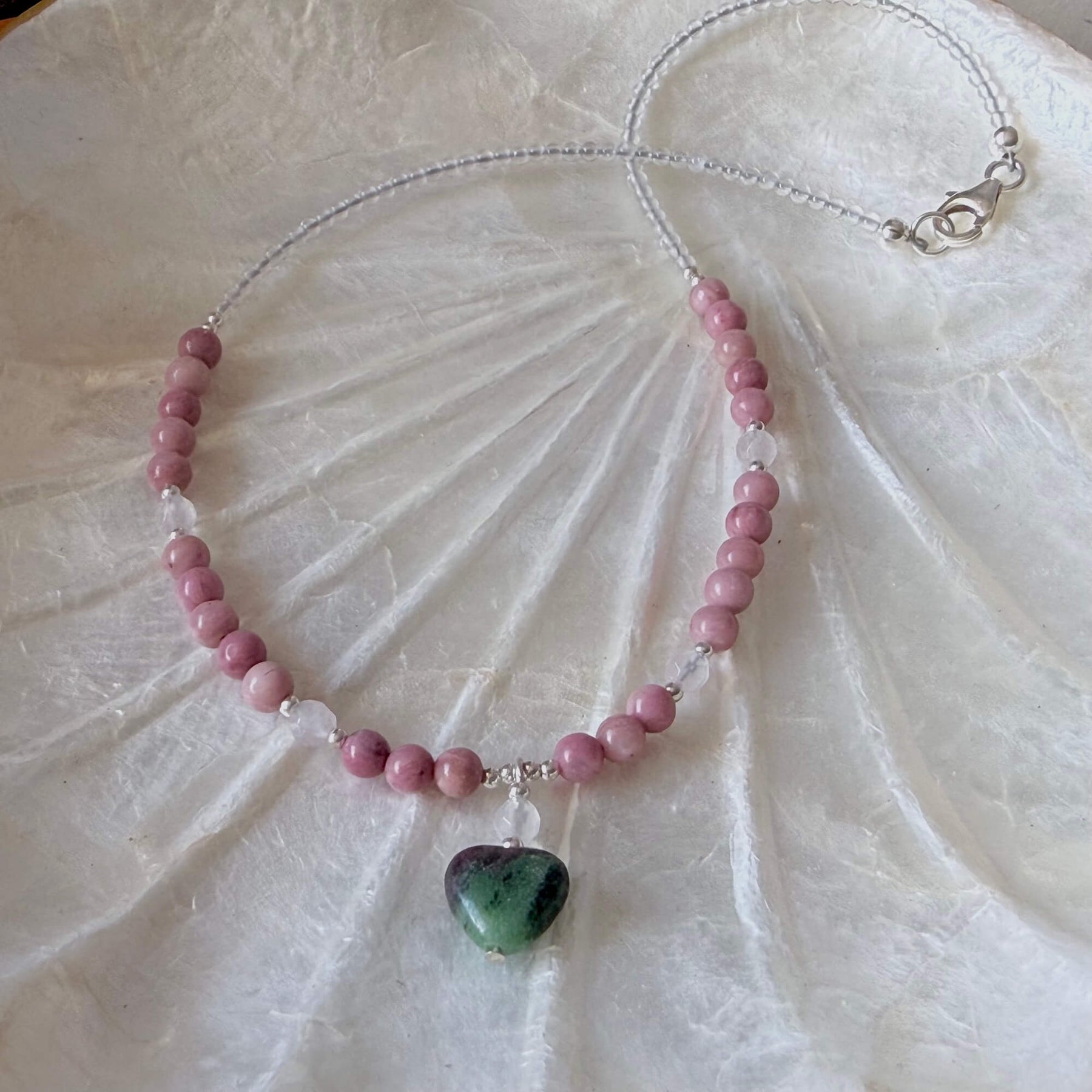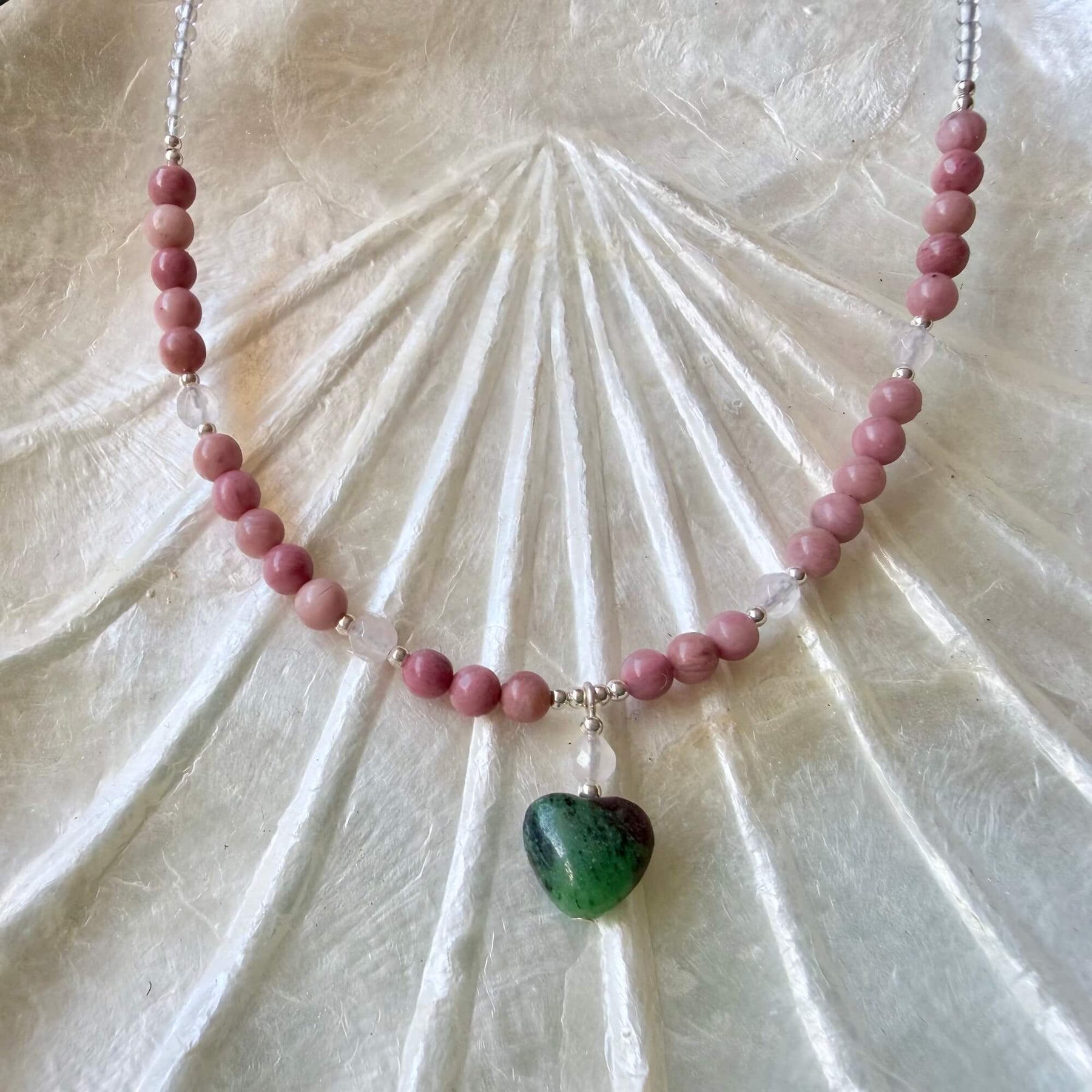 Filled with love and balance Rhodonite's beautiful heartfelt energy nurtures you to fully embrace and love all that you are. Rhodonite strengthens your heart and releases lack and self-doubt, providing you with feelings of self-love and self-worth.
