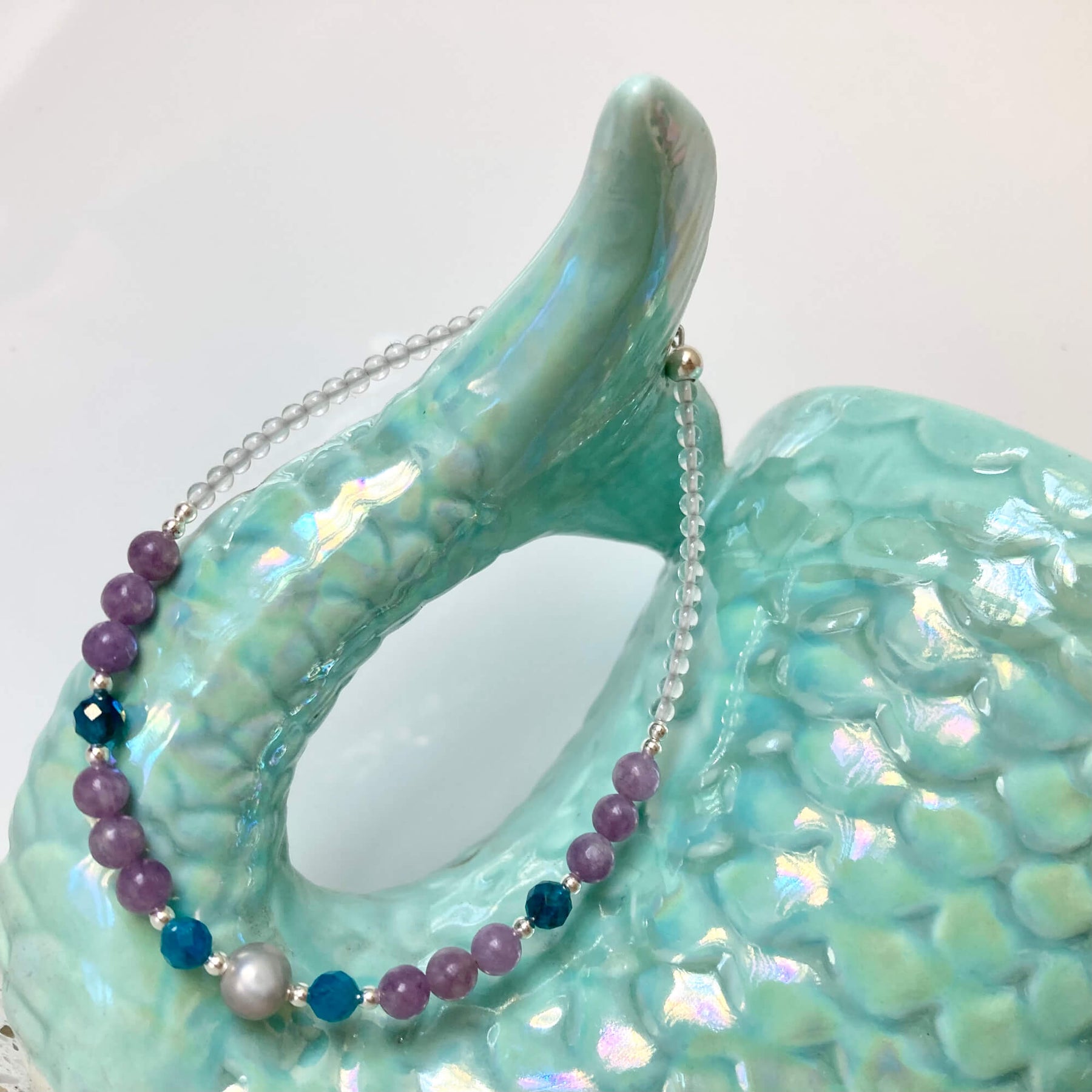 Lepidolite the stone of trust and acceptance, helps to release negativity within the body whilst enhancing self-acceptance and self-worth whilst making you aware of all the good within you.