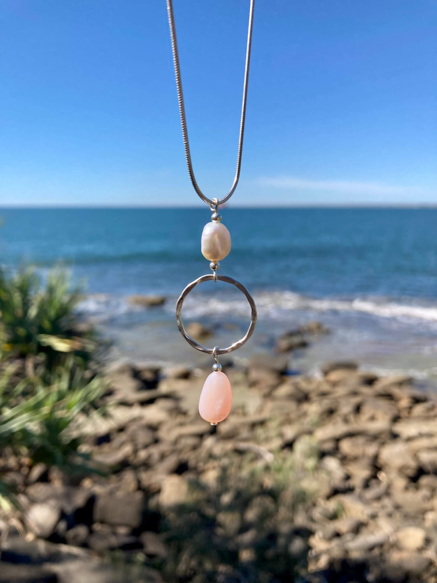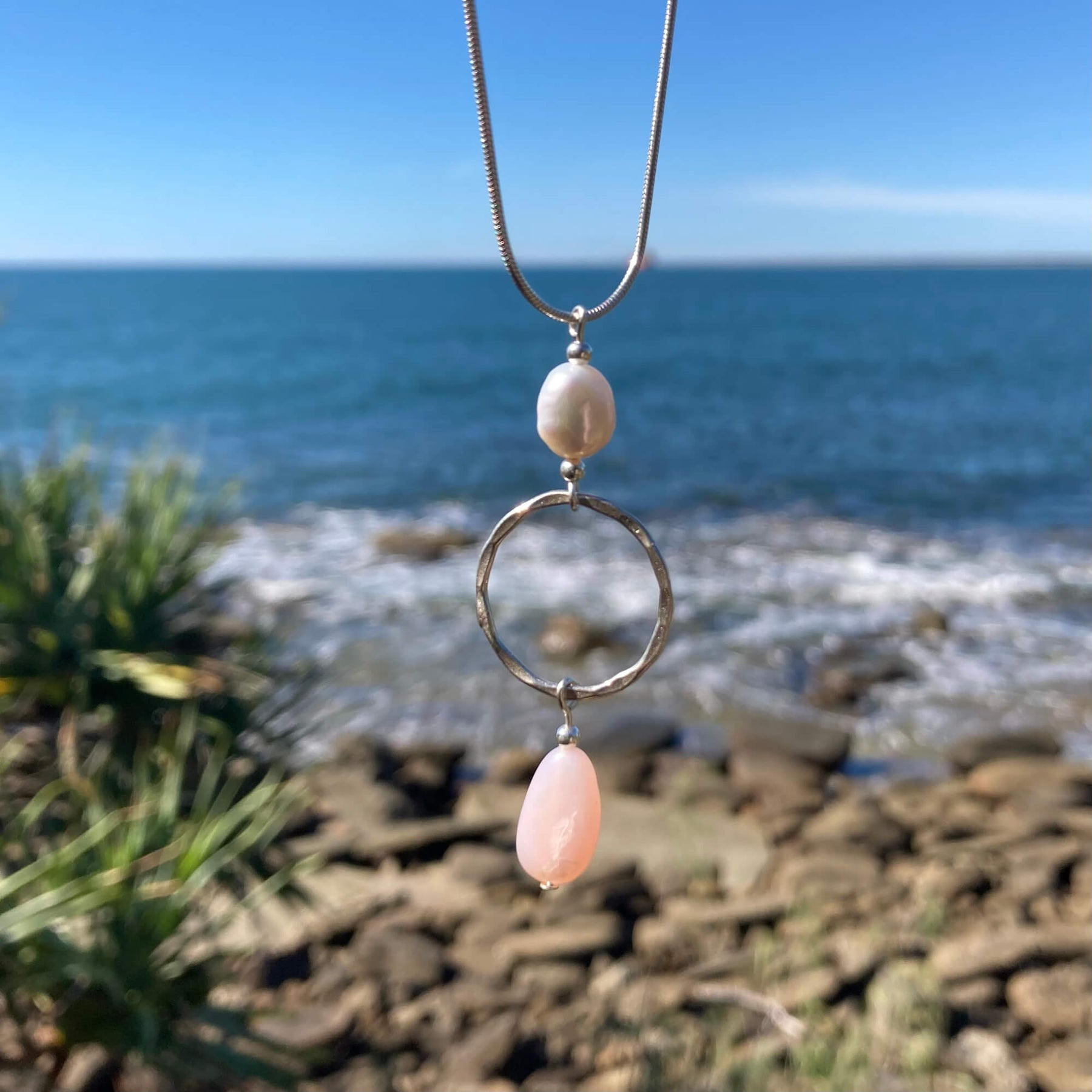 Pink Opal & Pearl Pendant Necklace