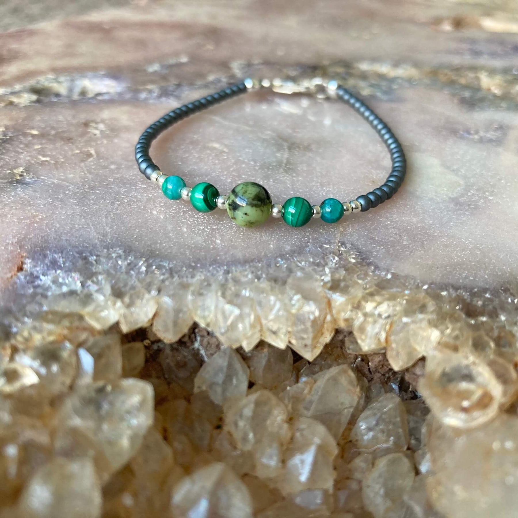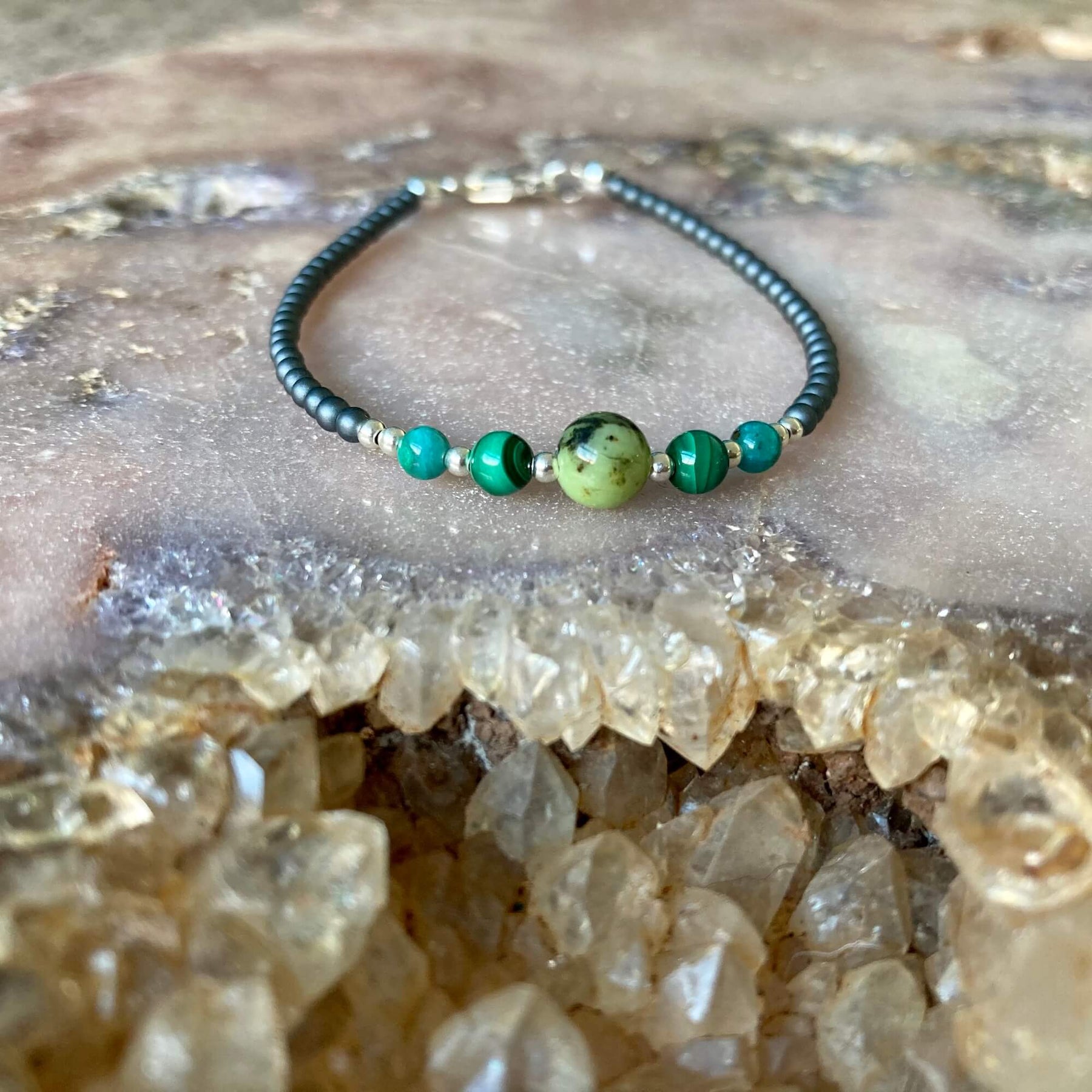 Chrysoprase, Chrysocolla and Malachite combined nurture and support a focused and organised Virgo, while reminding them to embrace their inner child to connect to their joy and magic.